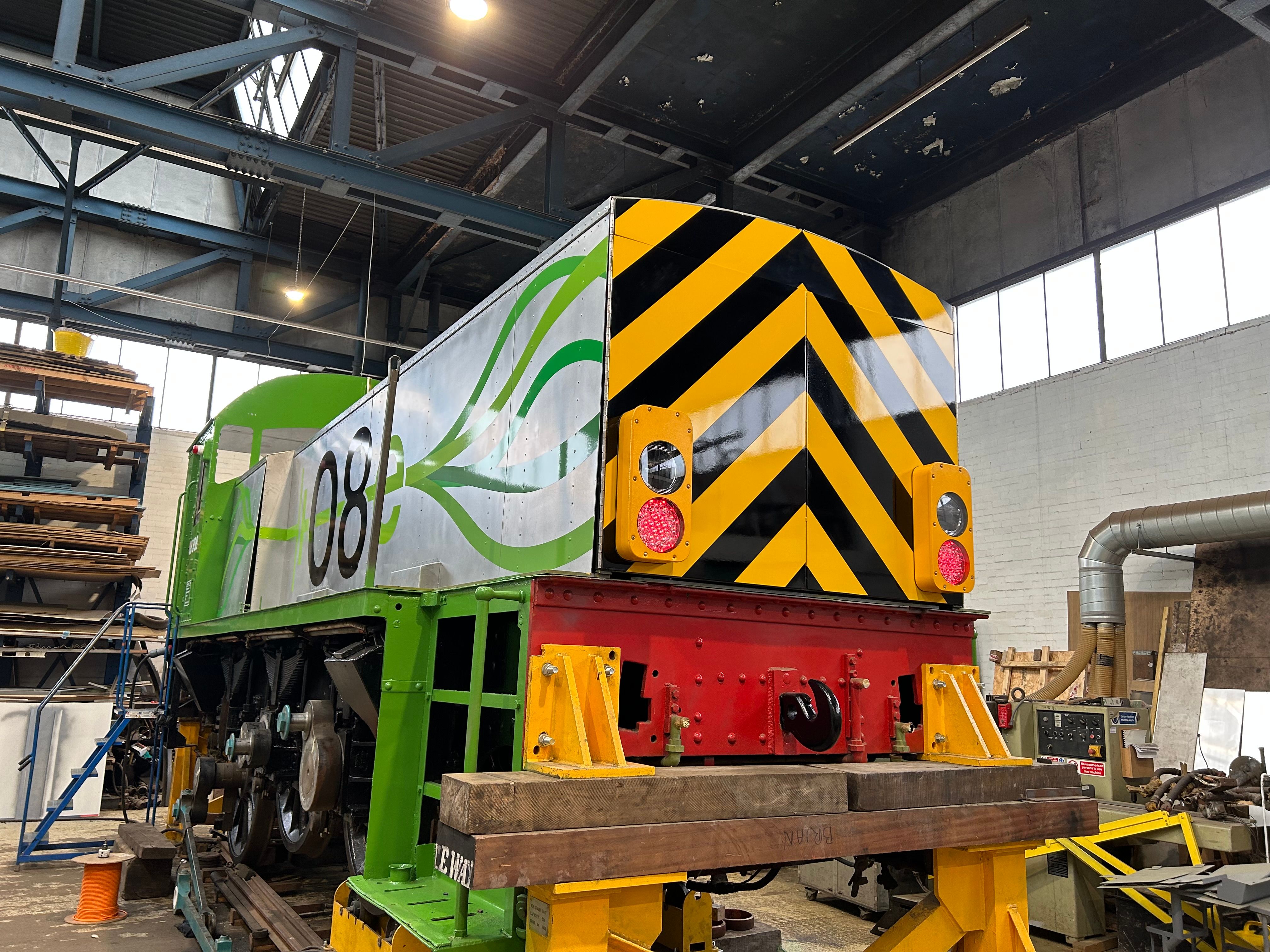 Re-engineering the 08 needed to be supported by a lot of new equipment to enable the battery power functionality. A new dryer compressor was required for the conversion and along with a new set of BMAC lights, 08308 was brought firmly into the 21st century.